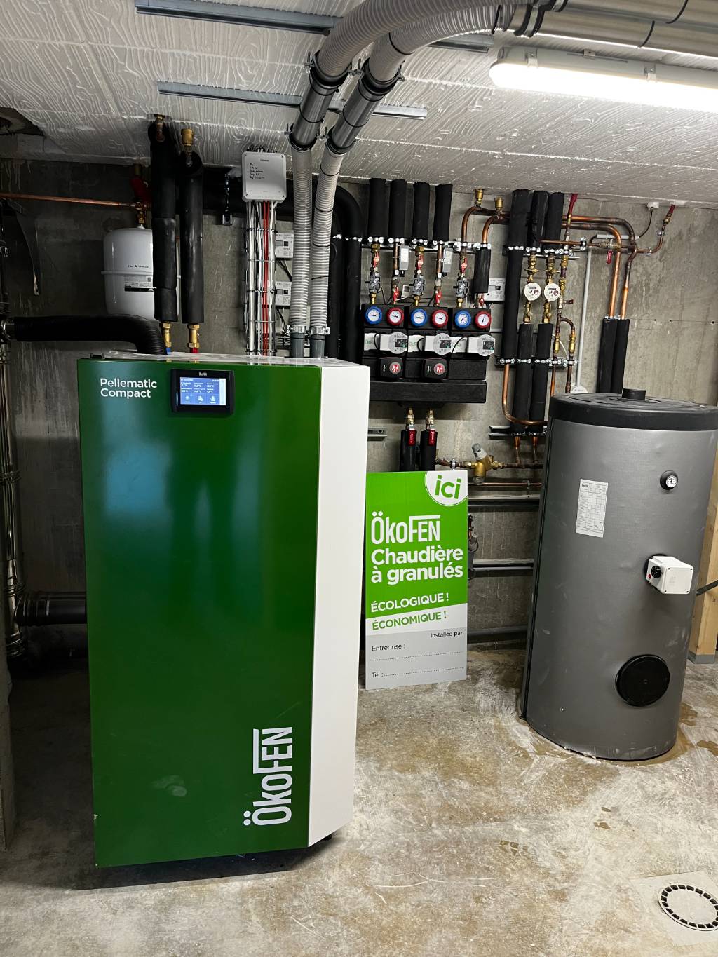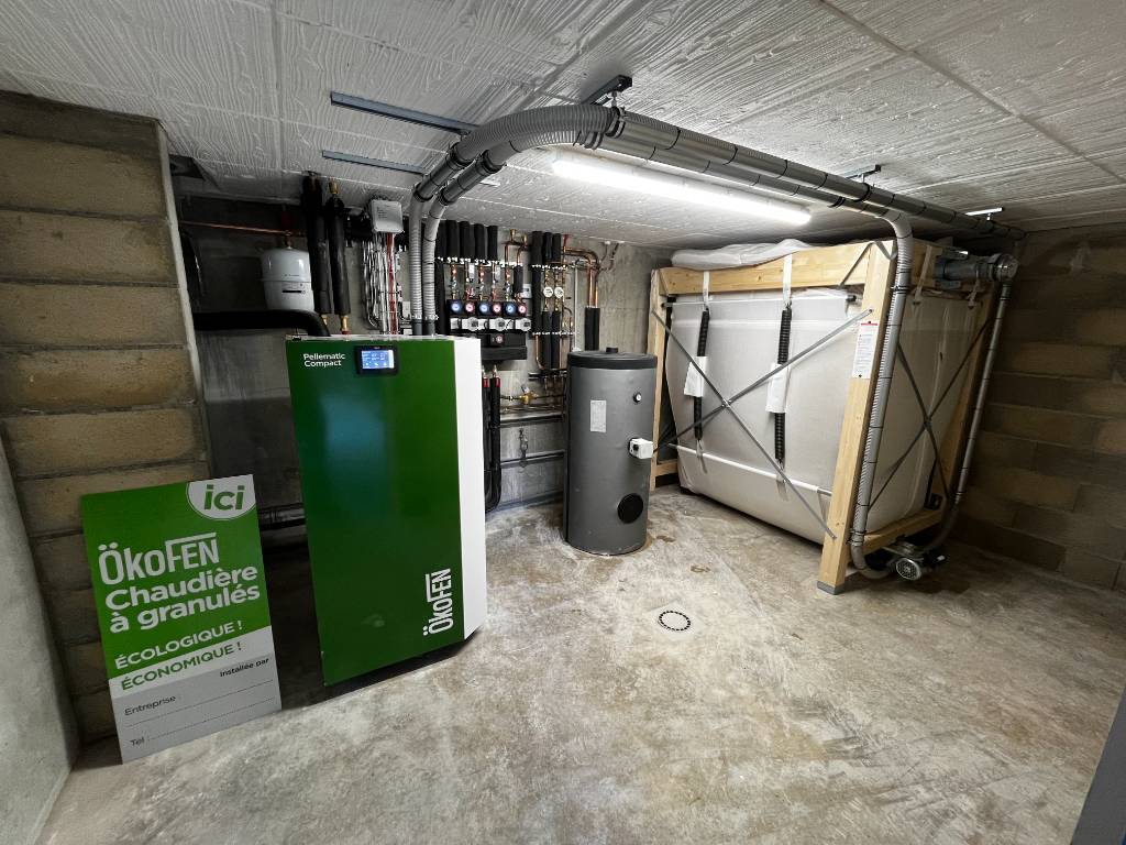 Cette installation automatique à pellets Okofen Pellematic Compact assure le chauffage par plancher chauffant de 2 appartements.