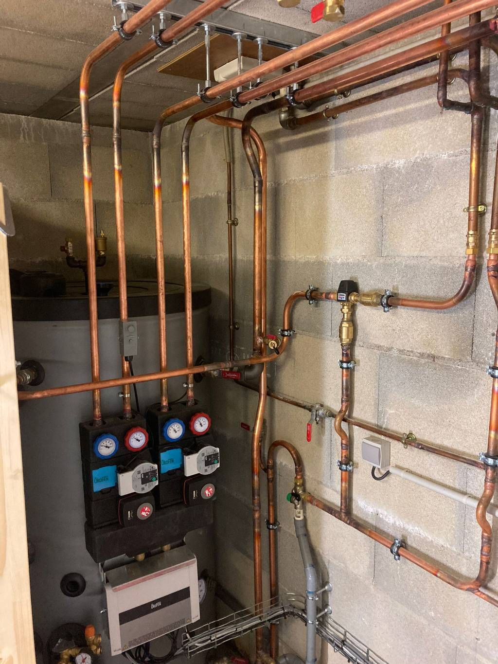 Cette nouvelle installation solaire assure la production d'eau chaude sanitaire ainsi qu'un soutien au chauffage central (plancher chauffant + radiateurs) de la maison. Le reste de l'énergie est assurée par la chaudière à Pellets.